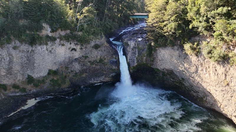 Incontriamo prima una bellissima cascata, un salto lungo un torrente con un letto di rocce apparentemente vulcaniche a cui dedichiamo foto ed il volo del drone di Toni..un supermercato dove facciamo una sosta per la colazione del giorno...un caffè a gestione familiare dove ci fermiamo per chiacchiere e fotografie e dove praticamente ci servono il caffè nonostante non abbiamo tutti i pesos necessari per pagare...guardiamo l'orologio..pochi km in tanto tempo..