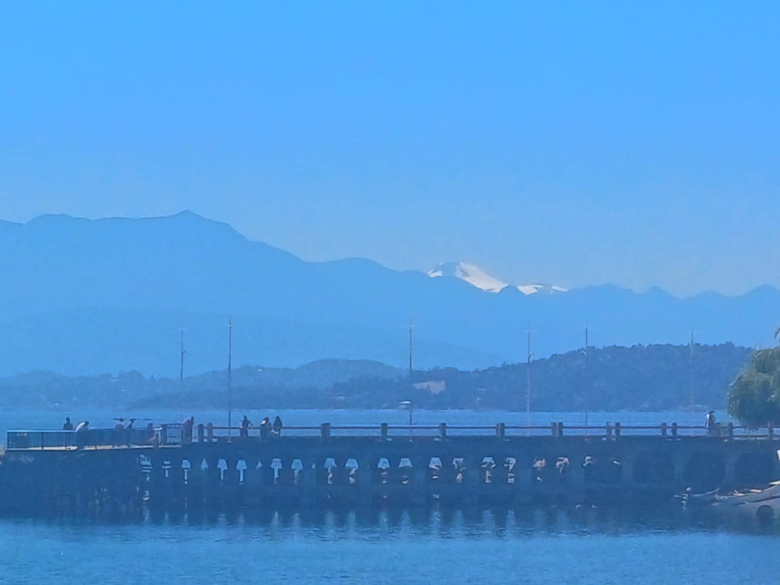 Acqua blu, spiagge balneabili, alcune isole, montagne ed in lontananza il volcano Rininhue, 2850mt...oltre alla bellezza la strada è un continuo "mangia e bevi"...anche oggi supereremo i 1000mt di dislivello..