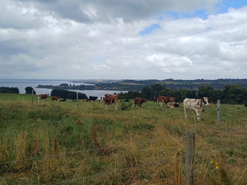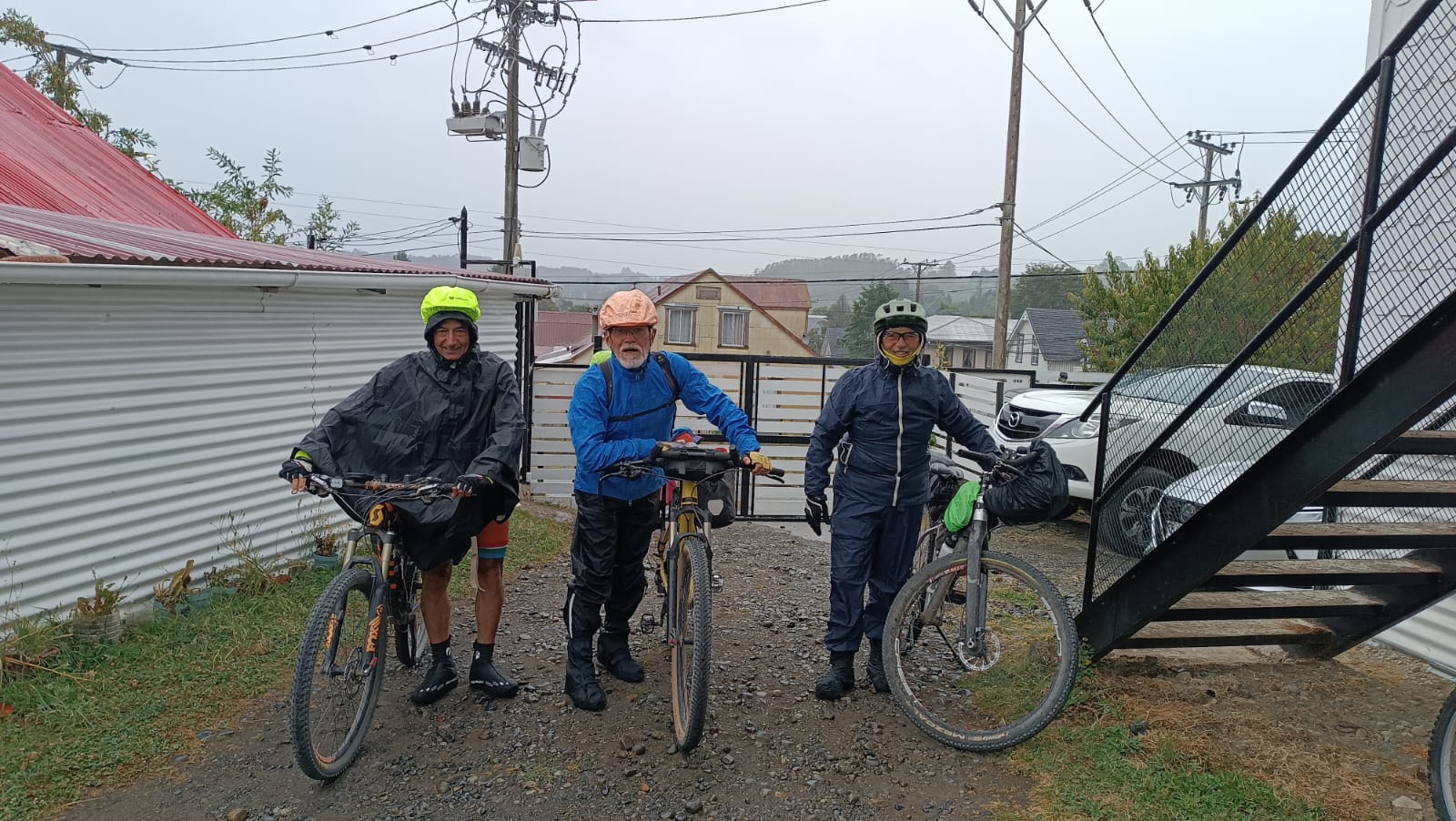 Facciamo colazione con David, che sta decidendo se partire o meno. Lui va nella direzione opposta, verso un nuovo anello intorno al lago, mentre noi ci prepariamo ad affrontare la nostra ultima tappa. Intorno alle 9, l’acqua cade decisa e l’uscita da Puerto Octay è subito in salita, come se il viaggio volesse ricordarci che niente è mai semplice fino alla fine.