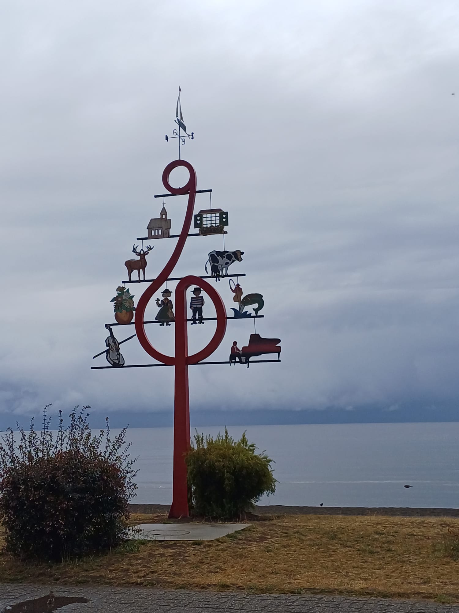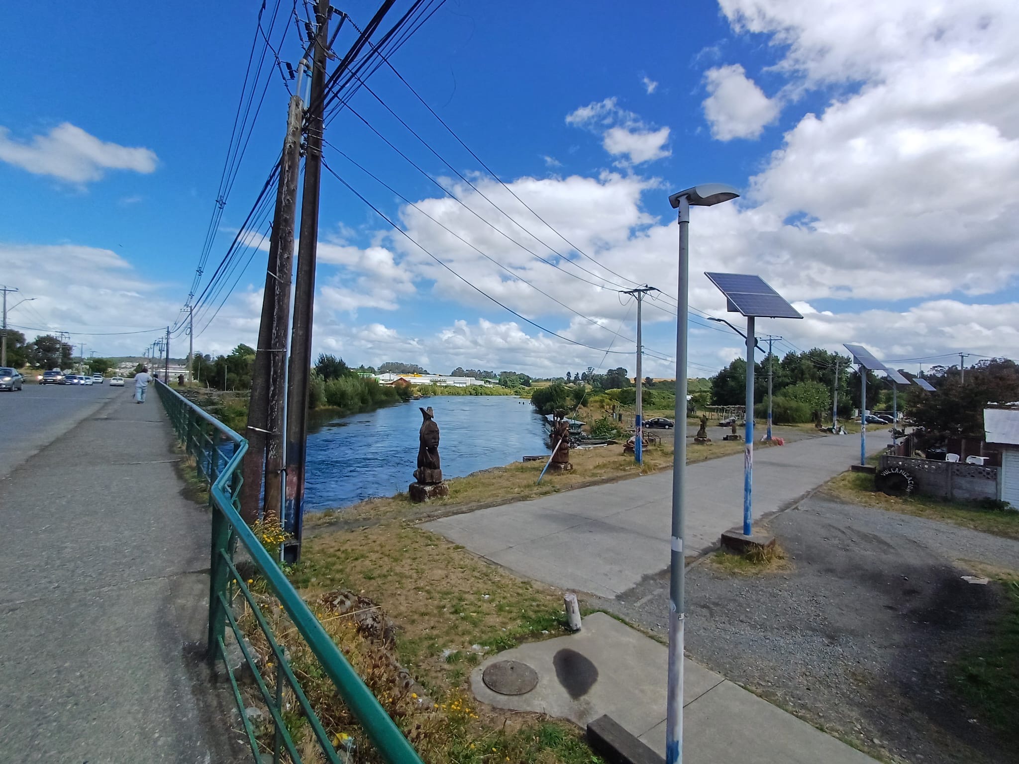 Frutillar racconta una storia diversa: l’influenza tedesca è ovunque, nell’architettura, nei simboli, nei nomi delle attività. È come attraversare un piccolo frammento d’Europa piantato tra le Ande. Ma il cielo non ci lascia illuderci troppo: quando decidiamo di ripartire, la pioggia torna a cadere, stavolta più forte. Ci cambiamo sotto una pensilina degli autobus e riprendiamo il cammino, con la consapevolezza che ogni goccia è un compagno di viaggio in questa ultima giornata.